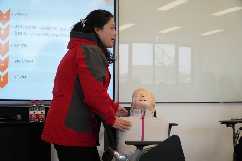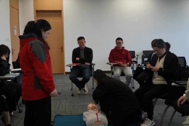 “手把手”教學(xué)模式下,大家個個爭先恐后,積極投入到各項急救技能的學(xué)習(xí)中。有人躍躍欲試地學(xué)習(xí)心肺復(fù)蘇(CPR)的正確姿勢與注意要點,有人認真學(xué)習(xí)著如何快速有效地處理氣道異物梗阻。在笑聲與掌聲中,學(xué)習(xí)氛圍變得越來越熱烈,仿佛每個人都沉浸在一場急救技能的“洗禮”中。