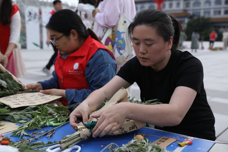 DIY體驗區(qū)熱鬧非凡,五彩繩、香囊、艾葉花束、艾草棒等材料應(yīng)有盡有,員工自由選擇心儀的制作項目,親手打造出獨(dú)具端午特色的紀(jì)念品,為家人和朋友驅(qū)邪納福、連接好運(yùn)。