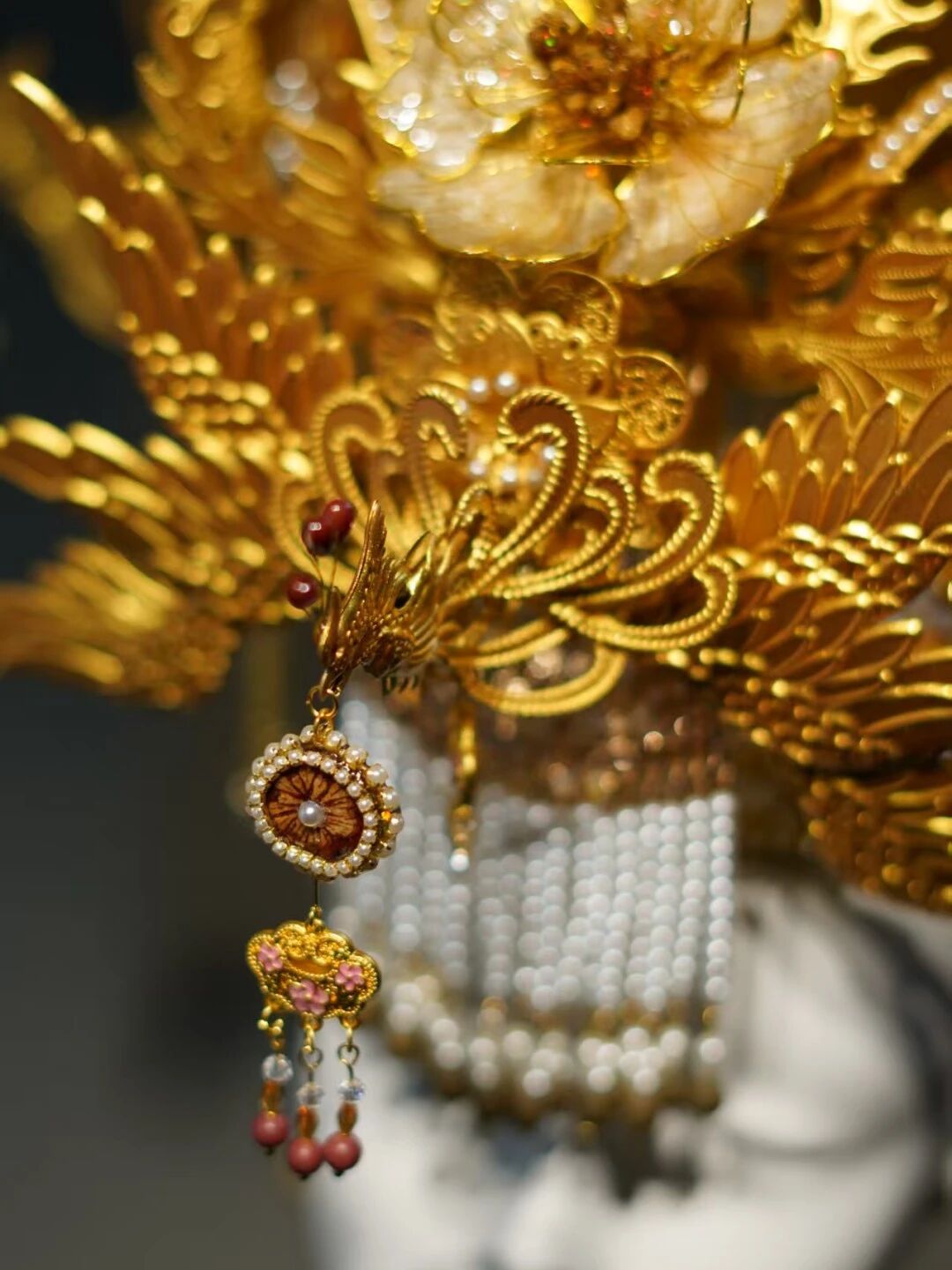 “中藥之冠”由揚(yáng)子江聯(lián)合文化創(chuàng)作博主共同打造,設(shè)計(jì)靈感源自傳統(tǒng)龍鳳冠,既承載了“龍鳳呈祥”“健康長(zhǎng)壽”的美好寓意,又實(shí)現(xiàn)了對(duì)中藥材的藝術(shù)化再造。制作團(tuán)隊(duì)從上百種藥材中精選20余味,用特殊工藝保留藥材天然質(zhì)感與清雅藥香:木蝴蝶被塑造成層疊的牡丹花瓣,金銀花與紅豆搭配成精巧花蕊,冠冕流蘇則由多味藥材研磨制成的香珠串聯(lián)而成,成為可觀(guān)賞、可感知的中醫(yī)藥文化新載體。